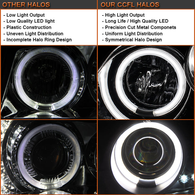 AKKON - Fits 07-13 Toyota Tundra 08-17 Sequoia Dual Halo Projector LED Headlights Pair + 8000K HID
