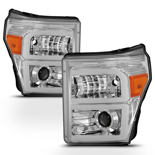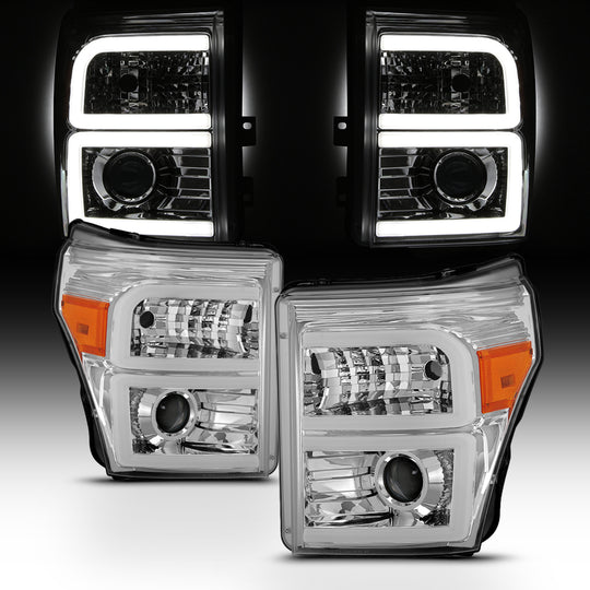 AKKON - For 2011-16 Ford Super Duty F-250/F-350/F-450 LED Daytime Running Lamp Bar Projector Headlights Chrome Housing Clear Len