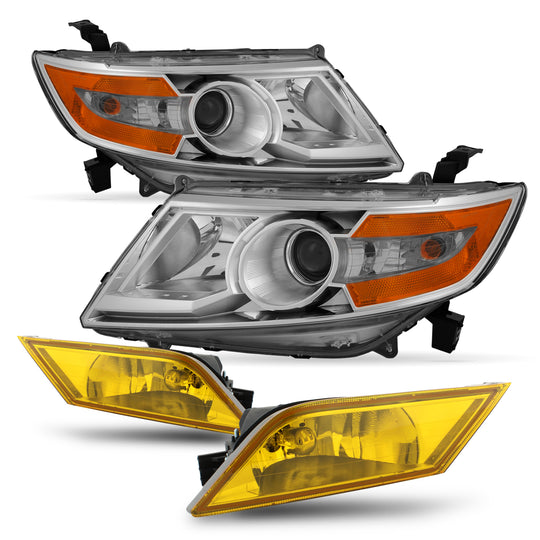 Regular price $199.98This is a 100% brand new pair of Headlights Replacement Assemblies in Polished Platinum Chrome Housing With Crystal Clear Lens & Fog lights in Polished Platinum Chrome Housing With Yellow Lens Compatible With: 2011-2013 Honda Odyssey... -
