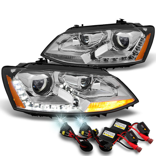 Regular price $299.99This is a 100% brand new pair of Headlights Replacement Assemblies with HID Conversion Kit in Polished Chrome Housing With Crystal Clear Lens Compatible With: 2011-2018 Volkswagen Jetta 4 Door Sedan Halogen Type Headlights Models Only... -