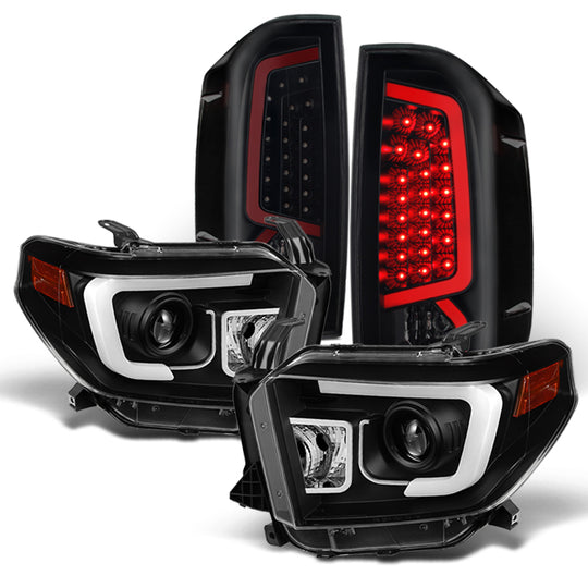 AKKON - For 2014 - 2021 Toyota Tundra Black DRL LED Tube Projector Headlight & Black Smoked LED Taillight Set
