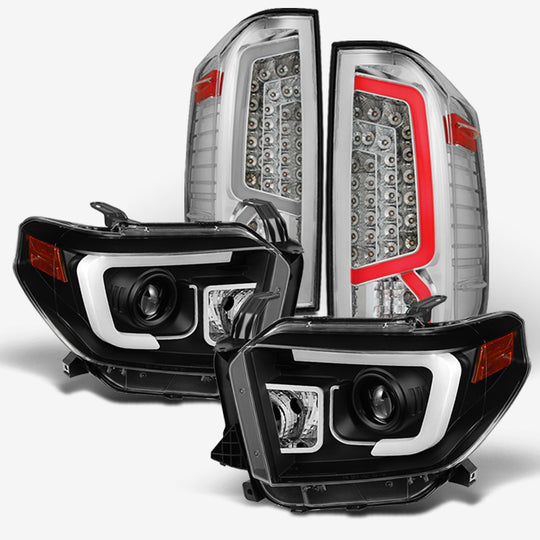 AKKON - For 2014 2015 2016 2017 2018 2019 2021 Toyota Tundra Black LED Tube DRL Projector Headlights Pair & Chrome LED Taillight Set