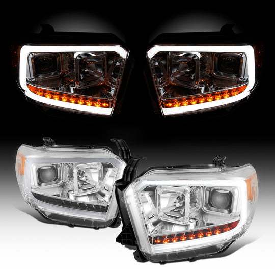 AKKON - For 2014 2015 2016 2017 2018 2019 2020 2021 Toyota Tundra Light Tube Projector Headlights Front Headlamps Set