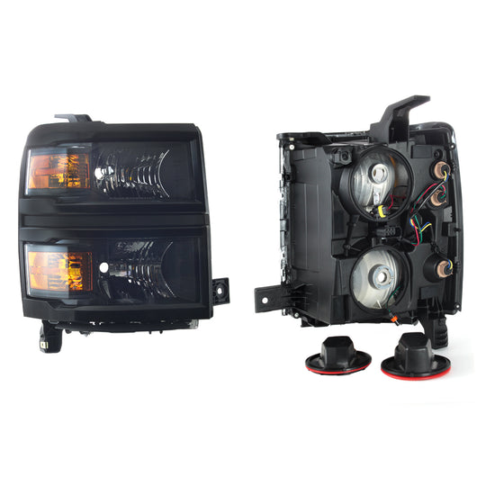 Regular price $143.99This is a 100% brand new pair of Headlights Replacement Assemblies in Midnight Black Housing With Crystal Clear Lens Compatible With: 2014-2015 Chevy Silverado 1500 ***Compatible Chevy Silverado 1500 Models Only*** ***Not Compatible 2014 Chevy Silverado...