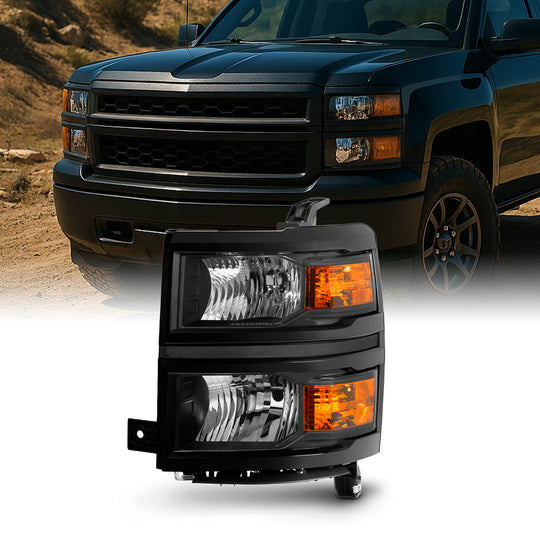Regular price $158.99This is a 100% brand new pair of Headlights Replacement Assemblies in Midnight Black Housing With Crystal Clear Lens Compatible With: 2014-2015 Chevy Silverado 1500 ***Compatible Chevy Silverado 1500 Models Only*** ***Not Compatible 2014 Chevy Silverado... -