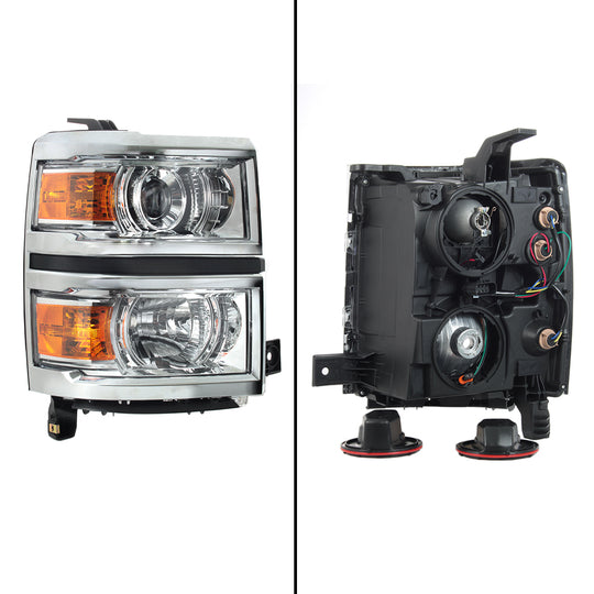 Regular price $128.99This is a 100% brand new pair of Headlights Replacement Assemblies in Polished Chrome Housing With Crystal Clear Lens Compatible With: 2014-2015 Chevy Silverado 1500 ***Compatible Chevy Silverado 1500 Models Only*** ***Not Compatible 2014 Chevy Silverado... -