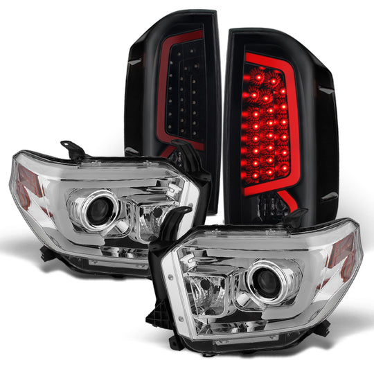 AKKON - For 2014-2021 Tundra Chrome DRL LED Tube Projector Headlights & Black Smoked LED Taillights