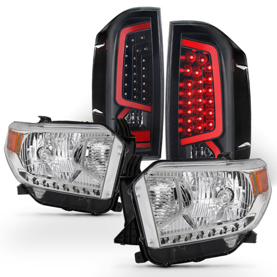 AKKON - For 2014-2021 Toyota Tundra TRD Truck Clear Headlights Lamps Pairs & Chrome LED Taillights Set