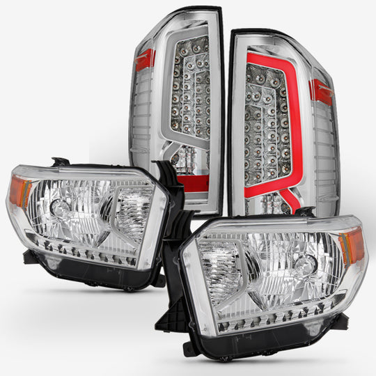 Regular price $328.99This is a 100% Brand New Headlights & LED Tail Lights Replacement in Headlight:Chrome Housing,Tail Light:Chrome Housing Compatible With: 2014-2021 Toyota Tundra ***Not Compatible w/ Factory LED DRL (Running Light) Headlights Models*** ***Model Equipped with Electronic... -