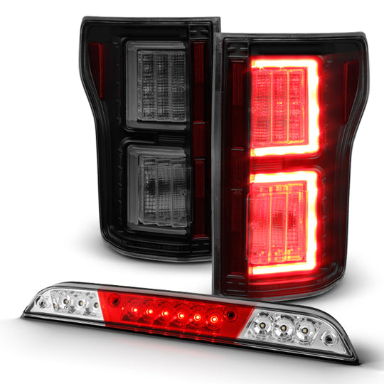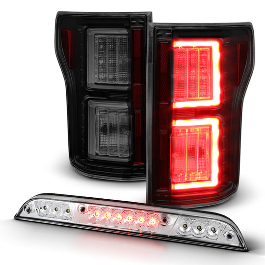 AKKON - For 2015 2016 2017 Ford F150 F-150 Black Smoke LED Taillights + Chrome LED 3rd Brake Light Cargo Lamp