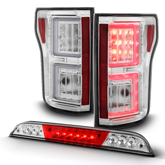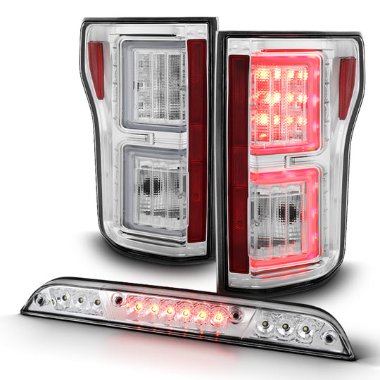 AKKON - For 2015 2016 2017 Ford F150 F-150 Chrome LED Tube Tail Lights + Red LED 3rd Brake Light Cargo Lamp