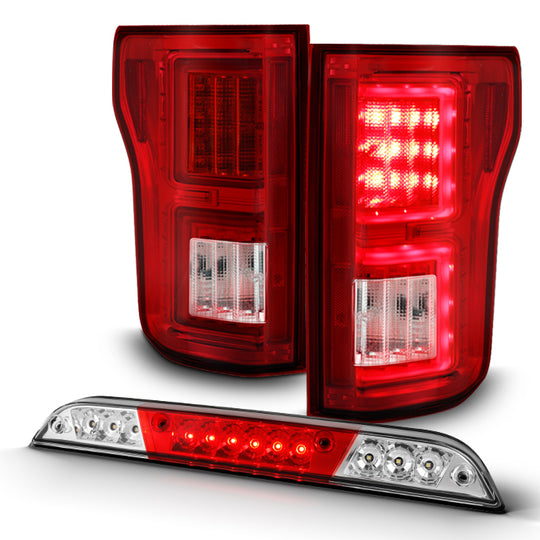 AKKON - For 2015 2016 2017 Ford F150 F-150 F-150 Red LED Tube Taillights + Red LED 3rd Brake Light Cargo Lamp