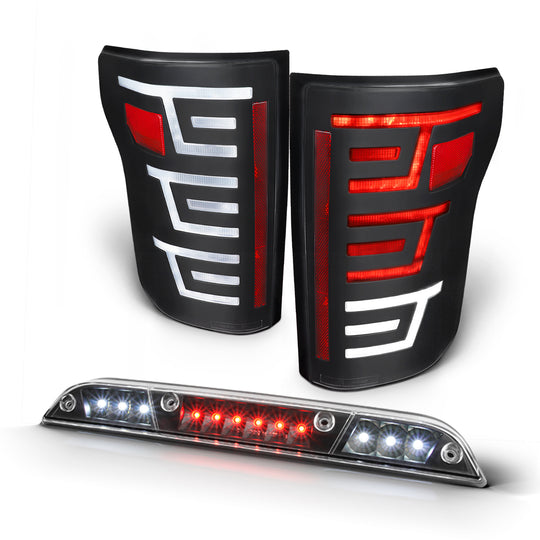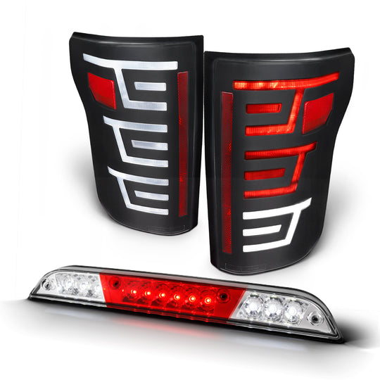 Regular price $268.99This is a 100% brand new pair of Tail lights in Midnight Licorice Black Housing With Crystal Clear Lens & 3rd Brake light in Midnight Licorice Black Housing With Crystal Clear Lens Compatible With: 2015-2017 Ford... -