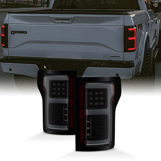 AKKON - For 2015-2017 Ford F150 Full LED Daytime Running Lamp Bar Tail Lights Black Housing Smoked Lens Full Set