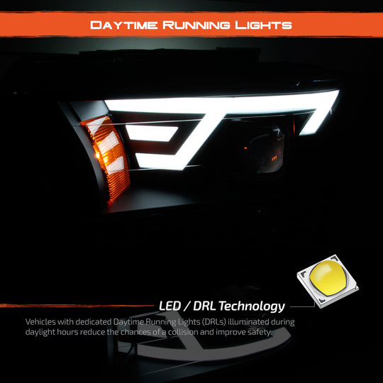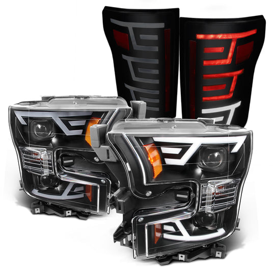 AKKON - For 2015-2017 Ford F150 Pickup Dual LED-DRL Light Bar Black Projector Headlight + Smoked LED Tube Tail Lamp