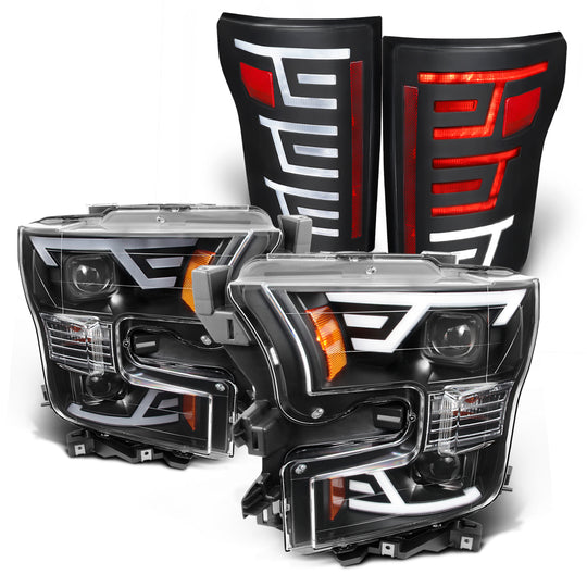 Regular price $494.99This is a 100% brand new pair of Headlights in Midnight Licorice Black Housing With Crystal Clear Lens & Tail lights in Midnight Licorice Black Housing With Crystal Clear Lens Compatible With: 2015-2017 Ford F150 Attention:... -