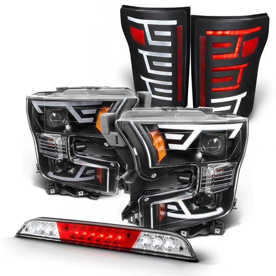 AKKON - For 2015-2017 Ford F150 Pickup Dual LED-DRL Light Bar Black Projector Headlight + LED Tail Lamp + Red 3rd Brake Light