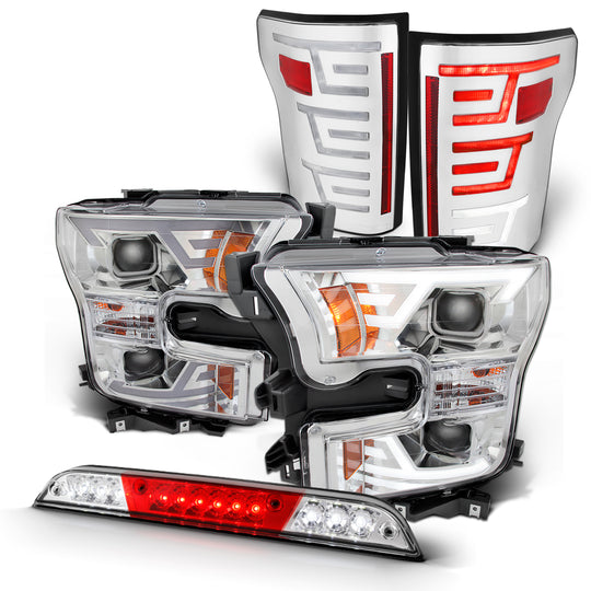 AKKON - For 2015-2017 Ford F150 Pickup Dual LED-DRL Light Bar Chrome Projector Headlight + LED Tail Lamp + Red 3rd Brake Light