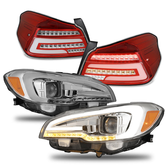 AKKON - For 2015-2021 Subaru WRX/WRX STI C-Shape LED Sequential Signal Chrome Projector Headlight + FULL LED Tail Brake Light