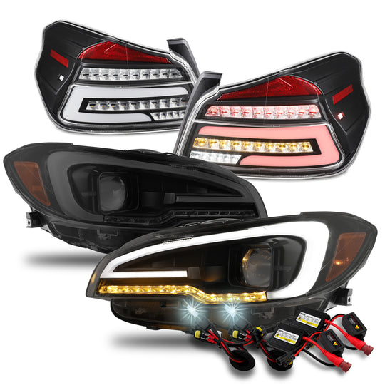 AKKON - For 2015-2021 Subaru WRX/WRX STI LED Bar DRL + Sequential Signal Projector Headlights + 6000K HID Kit