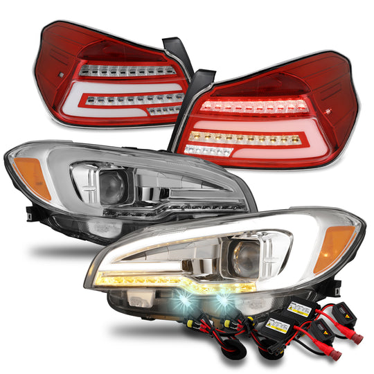 AKKON - For 2015-2021 Subaru WRX/WRX STI C-Shape LED Sequential Signal Chrome Projector Headlight + FULL LED Tail Brake Light + 8000K HID
