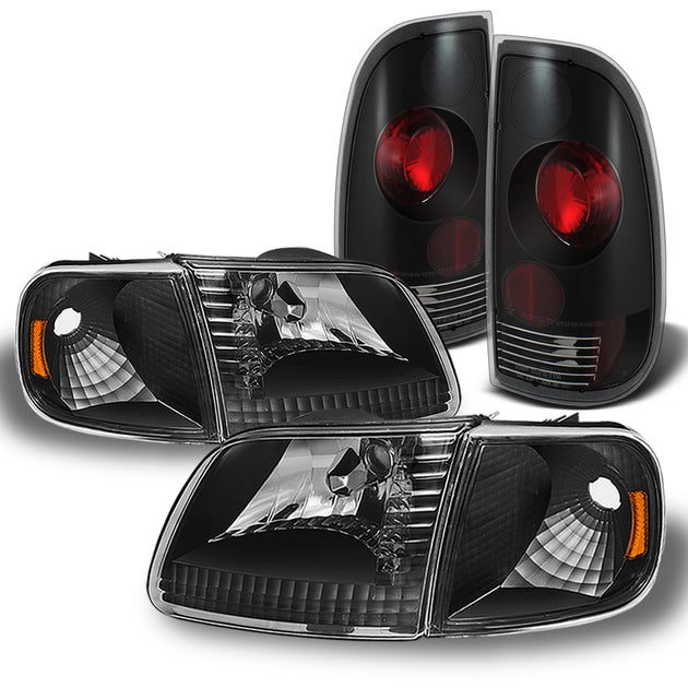 AKKON - Fits 1997-2003 F150 2004 F-150 Heritage 1997-1999 F250 Black Headlights + Corner Signal Lights + Blk Tail Lamp Pair