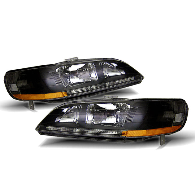 AKKON - Fits 1998-2000 Honda Accord 4Door Sedan Black Headlights + Red Clear Tail Brake Lamp w/ Trunk Piece Pair Replacement