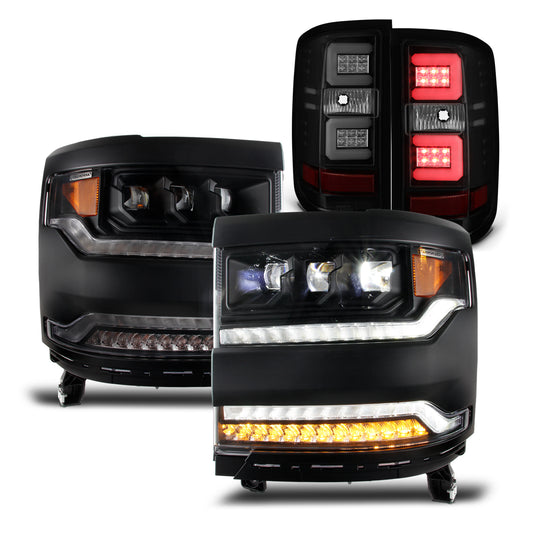 AKKON - For 2016-2018 Chevy Silverado Full LED Premium Projector Headlights + LED Tube Tail Lights Chrome Housing