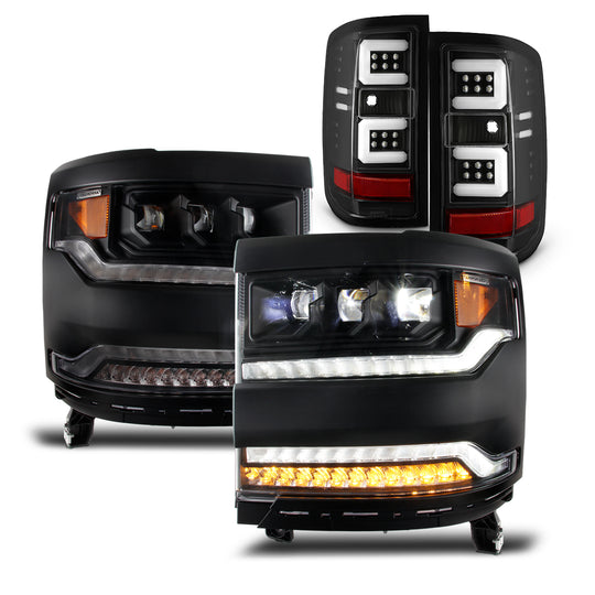 AKKON - For 2016-2018 Chevy Silverado Full LED Premium Projector Headlights Black Housing + Tail Lights Combo