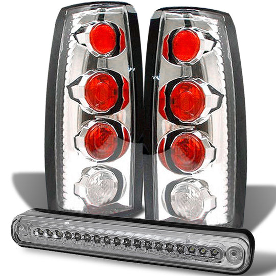 AKKON - For 88-98 C/K Series Sierra Silverado Tahoe Suburban Blazer Chrome Clear Tail Brake Lights + 3rd Brake light