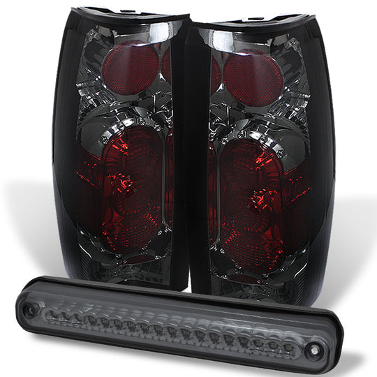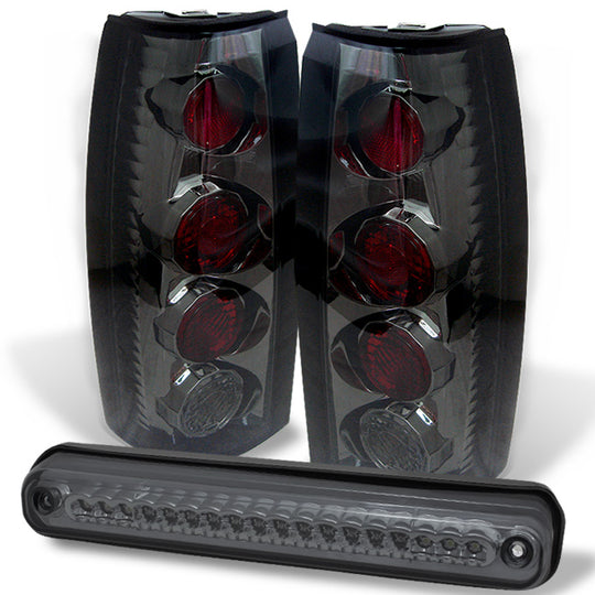 AKKON - For 88-98 C/K Series Sierra Silverado Tahoe Suburban Blazer Smoked Tinted Tail Brake Lights + LED 3rd Brake light