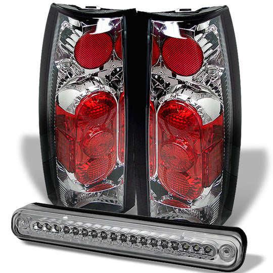 AKKON - For 88-98 C/K Series Sierra Silverado Tahoe Suburban Blazer Chrome Housing Tail Brake Lights + 3rd Brake light