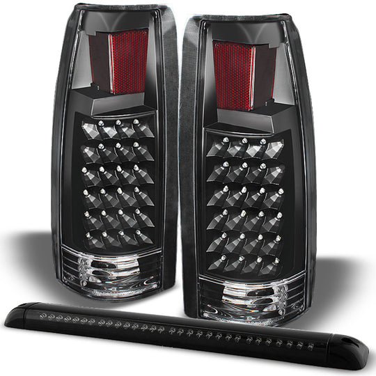 AKKON - For 92-99 Chevy GMC Suburban 1500 2500 Blazer Tahoe Yukon Black Bezel LED Tail Light + LED Smoked 3rd Brake Lamp