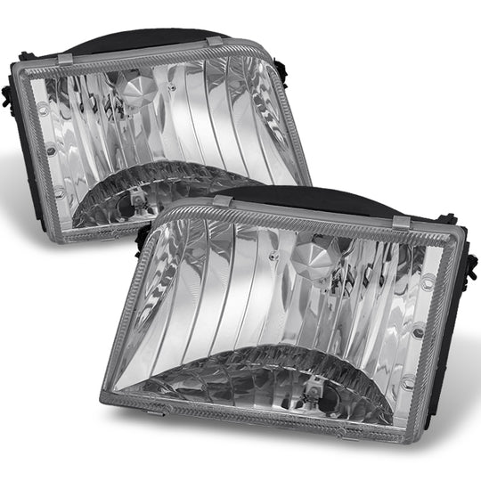 AKKON - For 93-97 Ford Ranger Pickup Truck Chrome Clear Headlights Front Lamps Direct Replacement Left + Right