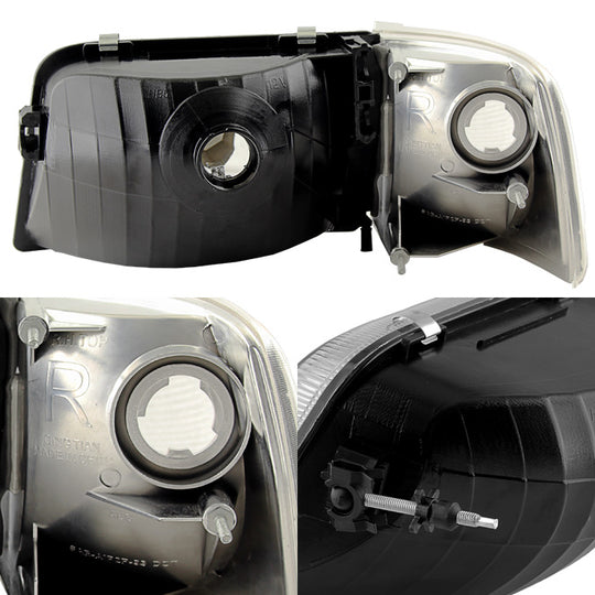 AKKON - For 93-97 Ford Ranger Pickup Truck Chrome Clear Headlights Replacement + Corner Signal Light Lamps Set