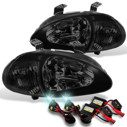 AKKON - For 93-97 Honda Del Sol Smoked 1PC Headlights Corner Signal Lamps + Slim 8000K HID Xenon Kit