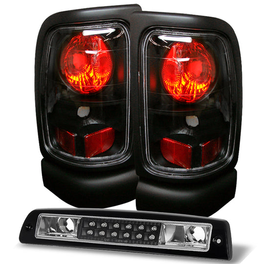 AKKON - For 94-01 Dodge Ram 1500 2500 3500 Pickup Truck Black Tail Lights+ LED Black 3Rd Third Brake Lamps Light