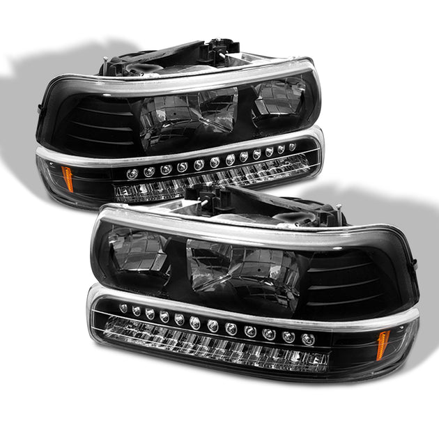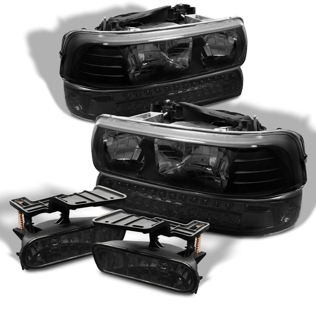 AKKON - Fits 1999-2002 Silverado 2000-2006 Tahoe Suburban Headlights Housing + Fog Lights + LED Corner Lights Combo