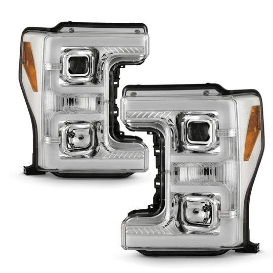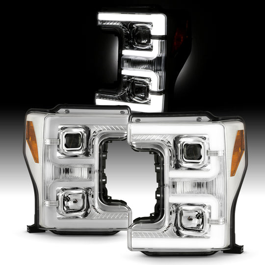 AKKON - Fit 2017 2018 2019 Ford F250/F350 Super Duty LED C-Tube [Halogen Type] Projector Chrome Headlights Pair Driver+Passenger