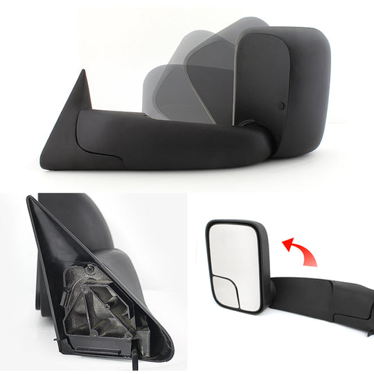Regular price $75.99This is a Pair of Heavy Duty Towing Manual Non-Power Side Mirror in Black Finished And It Fits 94-01 Dodge Ram 1500 Manual Telescoping Power Side Mirror 94-02 Dodge Ram 2500 Manual Telescoping Power Side Mirror... -