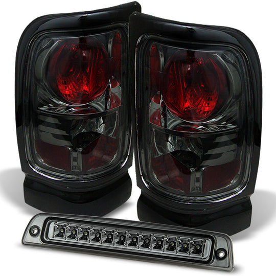 AKKON - For 94-02 Dodge Ram 1500 2500 3500 Smoked Lens Tail Light + LED 3rd Brake Cargo Light Set