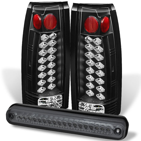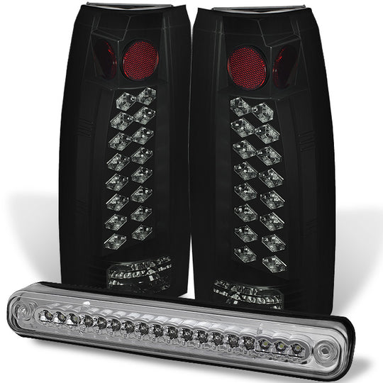 AKKON - For 94-98 C/K Series 1500 2500 3500 Full Size Black LED Tail Brake Lights + Smoked LED 3rd Brake light Pair