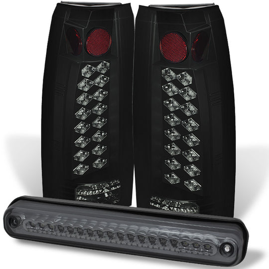 AKKON - For 94-98 C/K Series 1500 2500 3500 Blazer Smoked Tinted LED Tail Brake Lights + LED Smoke 3rd Brake light