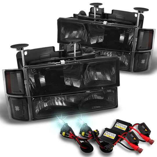 AKKON - For 94-98 99 Chevy C/K 1500/2500/3500 Tahoe Suburban Silverado C10 Smoke Headlights+8000K Blue White HID Kit Combo