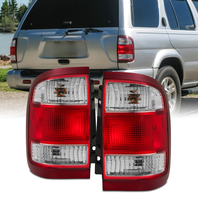 AKKON - Fits 1999-2004 Nissan Pathfinder Chrome Red Clear Tail Lights Pair Driver+Passenger w/Harness Accessories