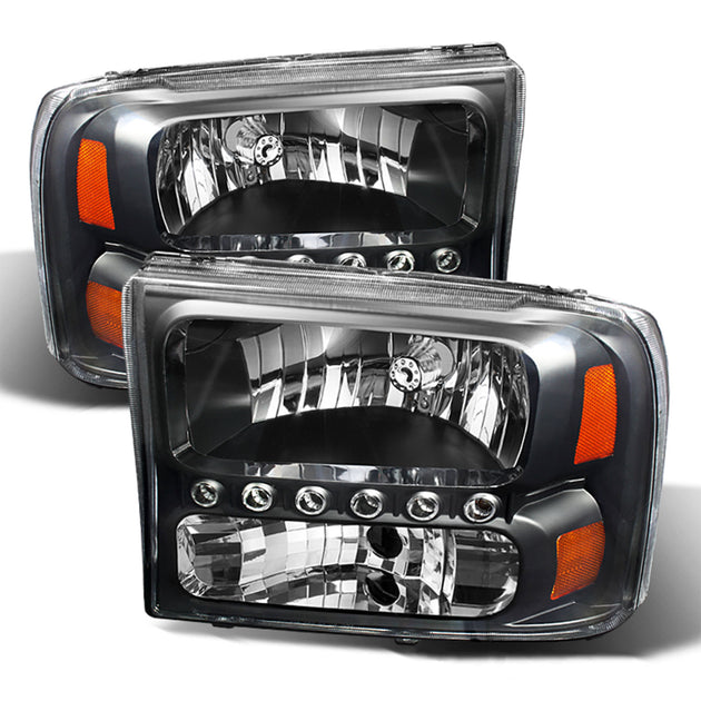 AKKON - Fits 1999-2004 Ford F250/F350/F450/F550 Super Duty Excursion LED Parking Tube Projector Black Headlights Pair Left+Right