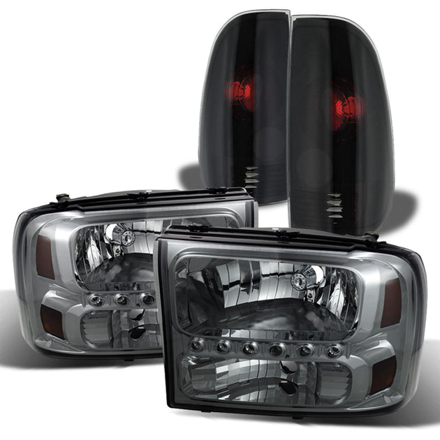 AKKON - Fits 1999-2004 Ford F250 F350 F450 F550 Superduty Smoked LED Headlights + Black Smoke Tail Lamp Brake Lights Pair LH+RH