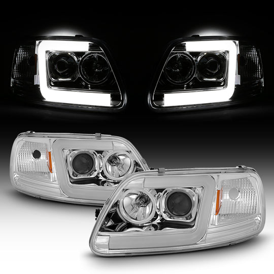 AKKON - For 97-03 Ford F150 / F250 97-02 Expedition Pickup Truck Red Tube Bar Projector Headlights Pair