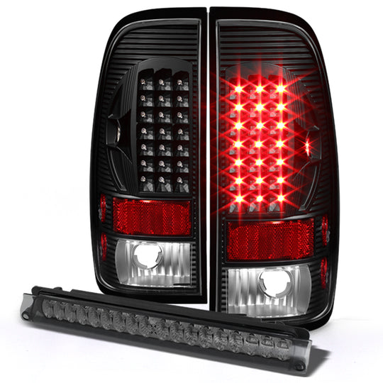AKKON - For 97-03 Ford F150 F-150 Pickup Truck Styleside Black LED Tail Lights + Smoke G2 LED 3rd Brake Lamps