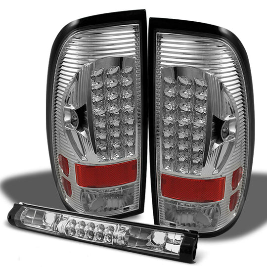 AKKON - For 97-03 Ford F150 F-150 Pickup Truck Styleside Chrome LED Tail Lights + Clear LED 3rd Brake Lamps Set